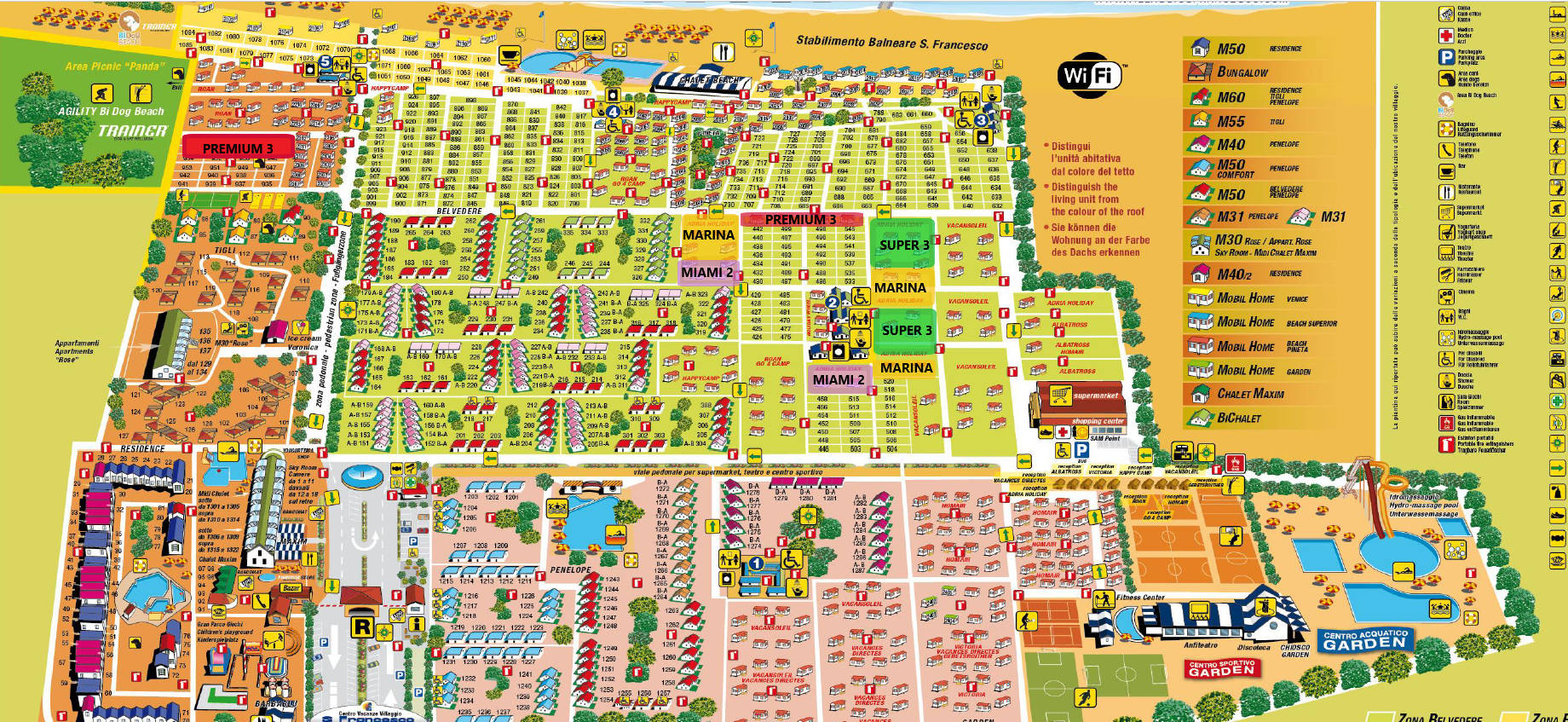 Ikke mindre en 9 forskellige swimmingpools byder Camping San Francesco på. Alt fra hvinende rutschebaner (mod betaling) til hyggelige boblebade. Det der er specielt på denne campingplads er, at de enkelte pool områder er fordelt på campingpladsen således, at I uanset, hvor I bliver indlogeret, vil I komme til at bo i nærheden af en swimmingpool. Nyd livet i den tropiske pool helt nede ved stranden, eller leg med i den store Maxim pool, hvor der i løbet af dagen arrangeres alt muligt vandsjov. Adgang til Spay Park Garden med 4 swimmingpools, 2 vandrutchebaner, hydromassage med mere er absolut det foretrukne sted på pladsen for vandhundene.